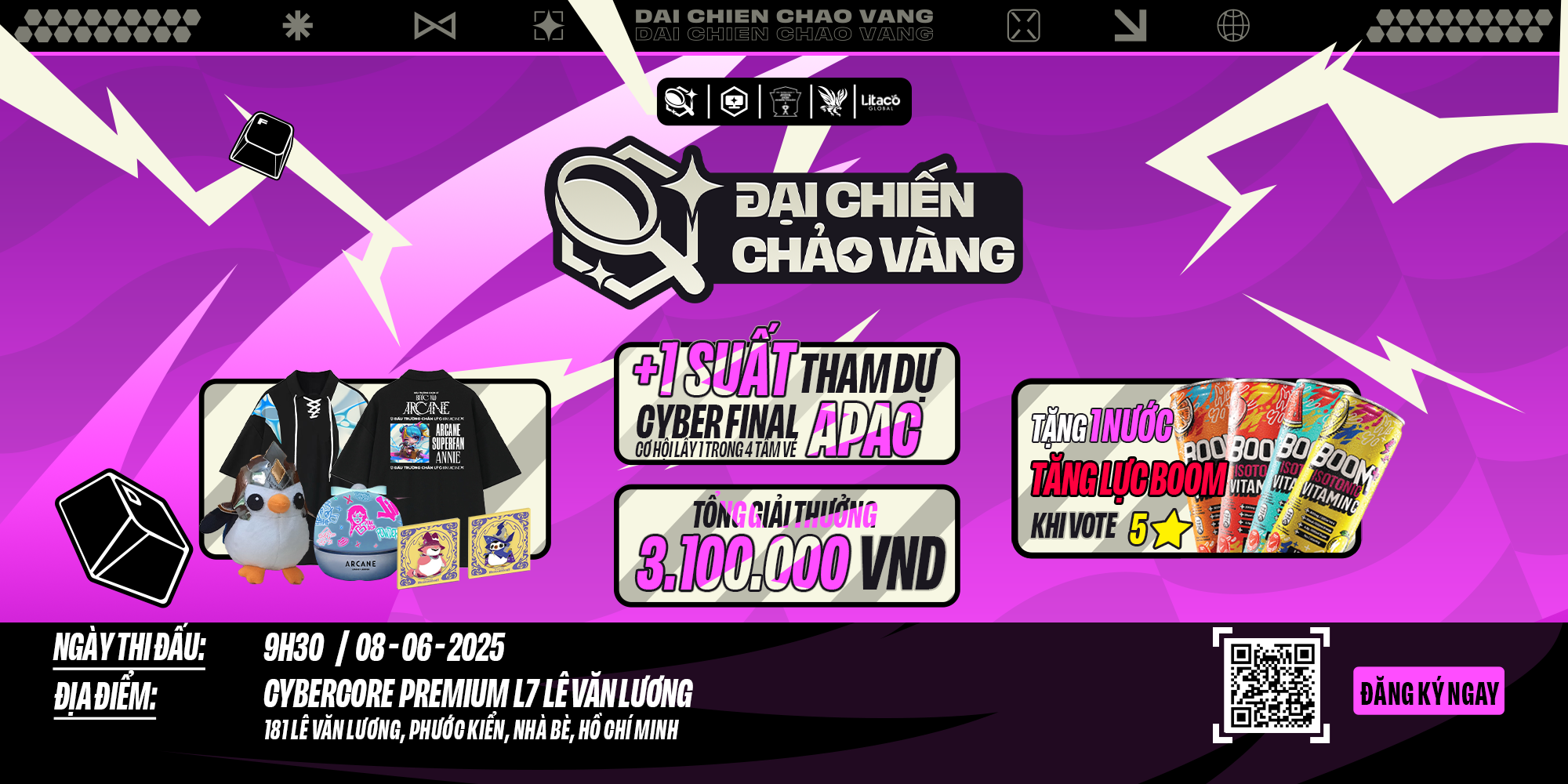- Địa điểm thi đấu: Phòng máy CyberCore Premium LÊ VĂN LƯƠNG - 181 Lê Văn Lương, Nhà Bè, TPHCM