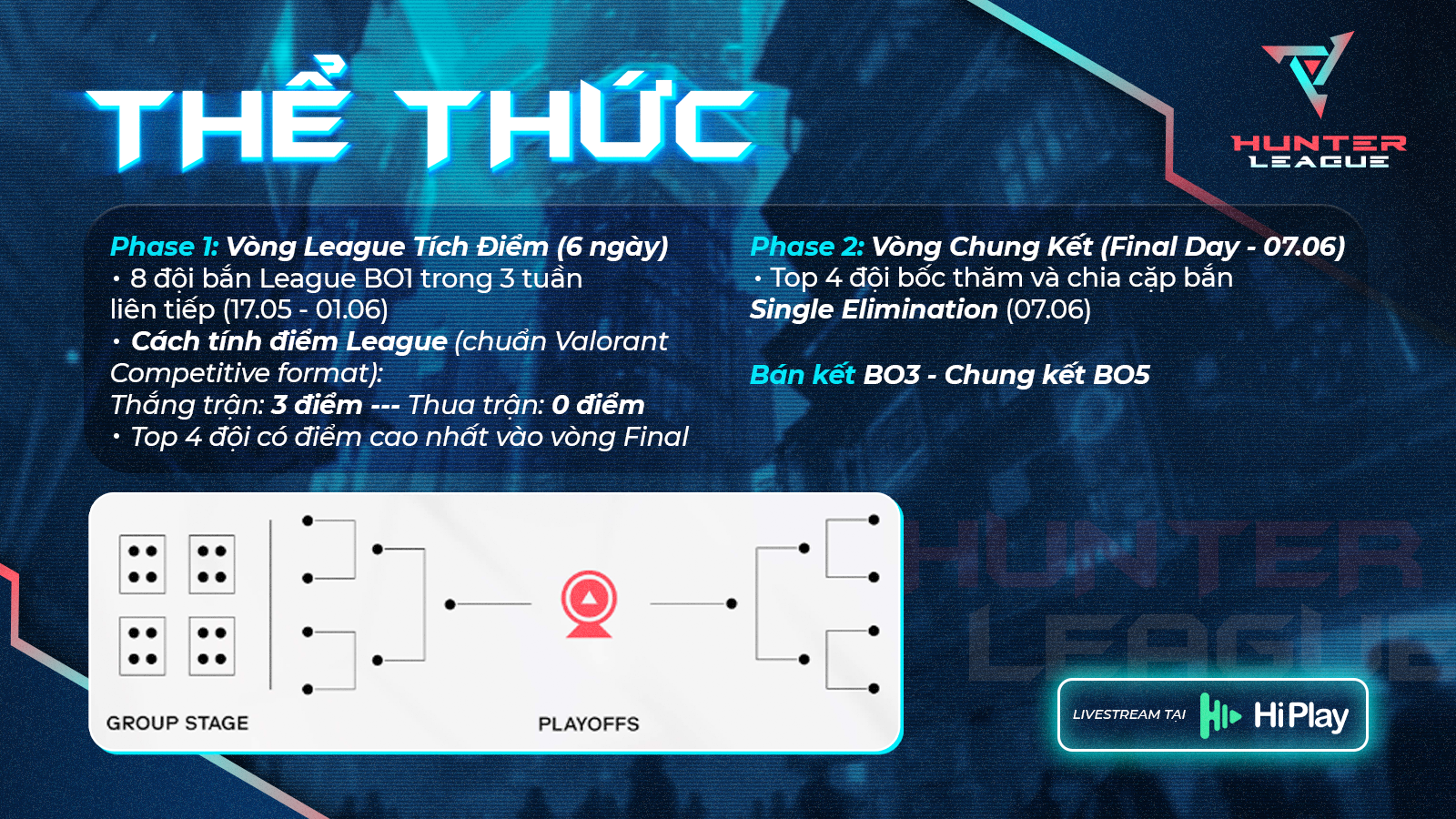 - Bán kết Bo3, Chung kết Bo5.