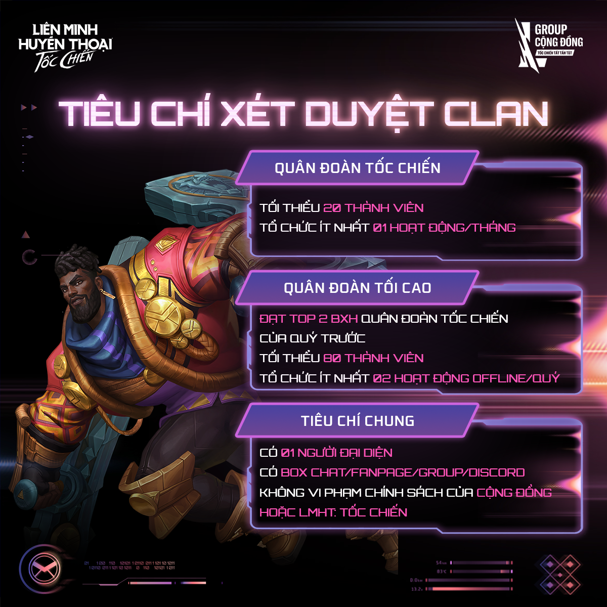 - Quân Đoàn Tốc Chiến: Tối thiểu 20 thành viên.
