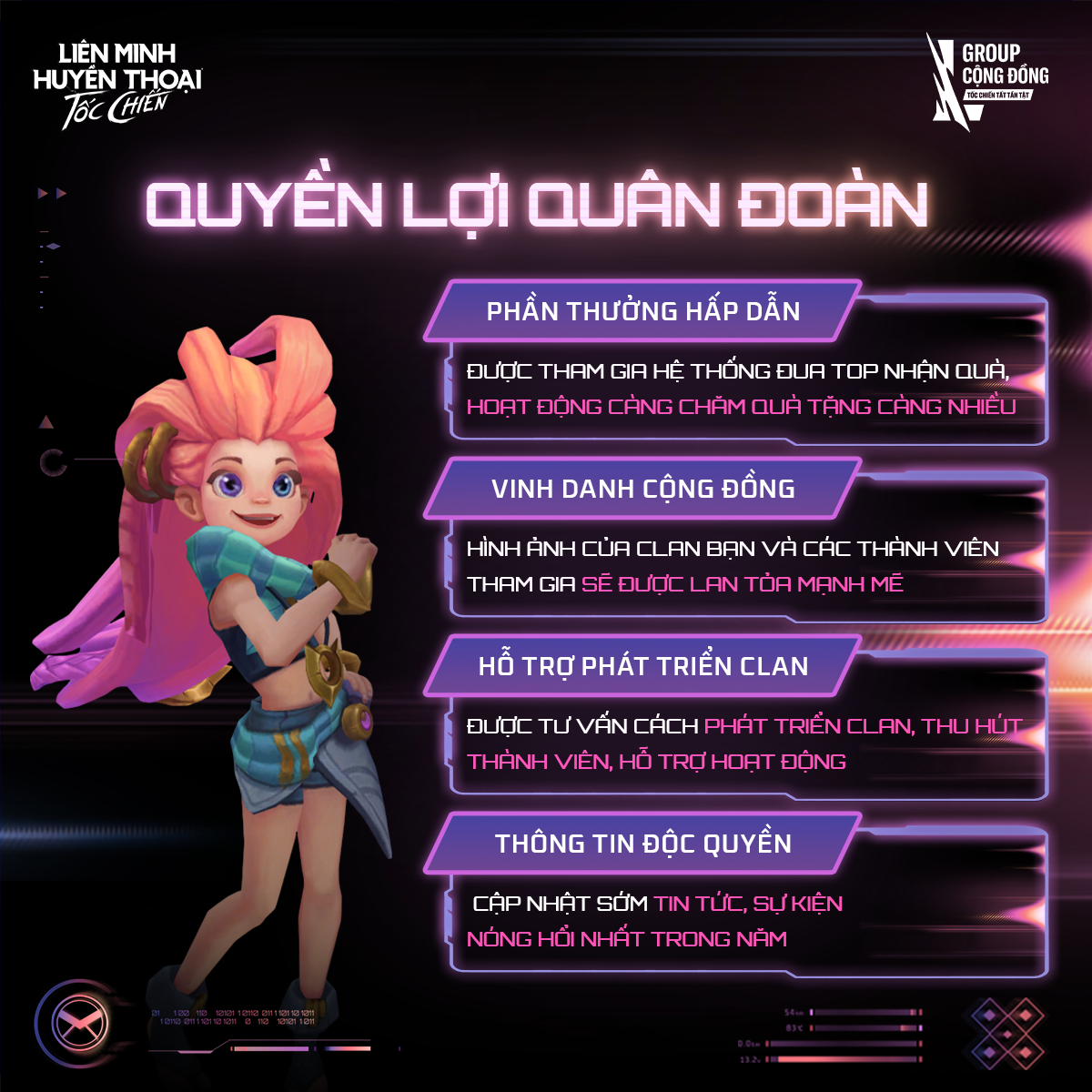 Hãy đăng ký ngay hôm nay để đưa Clan của bạn gia nhập đường đua, bứt phá thứ hạng và chạm tới đỉnh cao, ghi dấu ấn tại Quân Đoàn Tốc Chiến 2026 - nơi quy tụ những tập thể nổi bật nhất của cộng đồng.