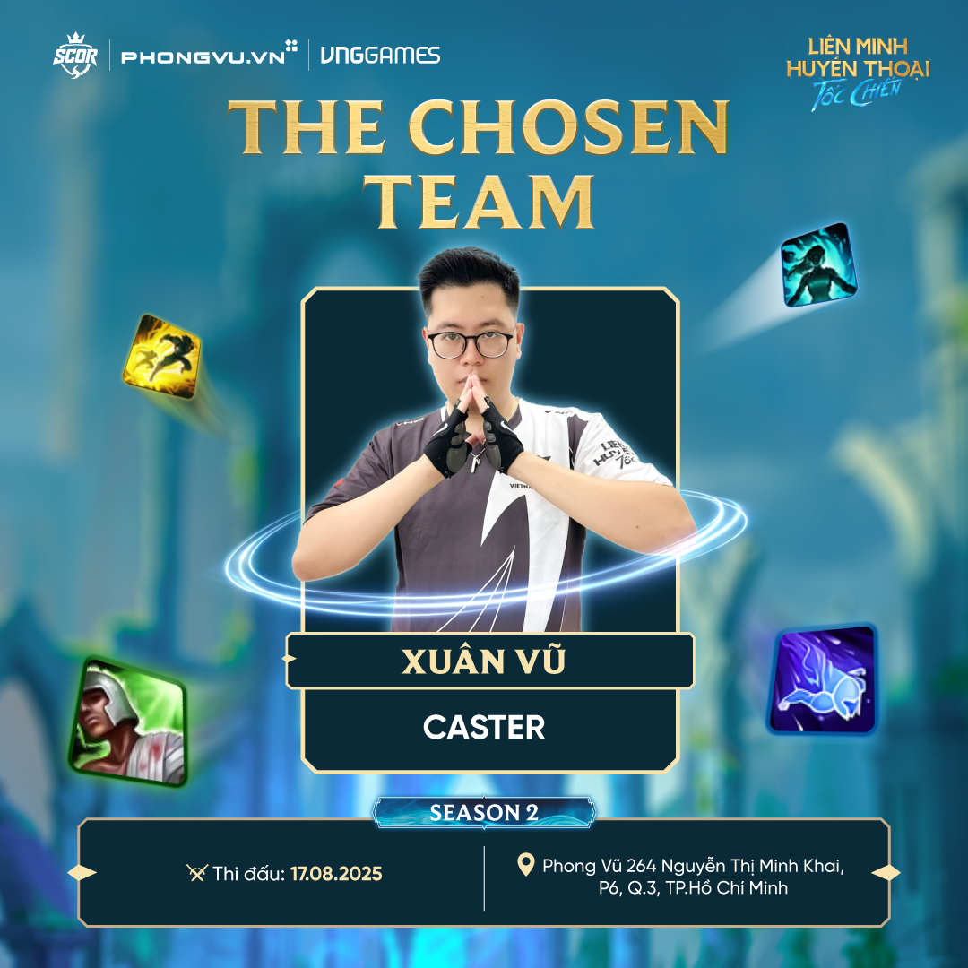 Xuân Vũ – Caster kỳ cựu của cộng đồng Tốc Chiến, với giọng bình luận đầy nhiệt huyết và chuyên môn cao.