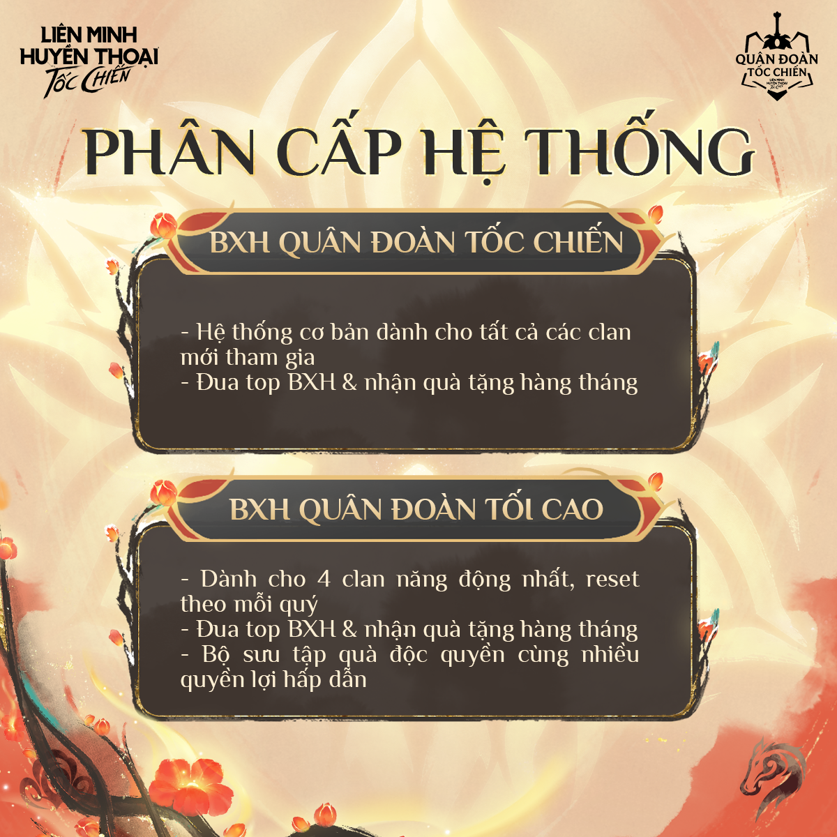 - Bảng xếp hạng Quân Đoàn Tốc Chiến: Dành cho các Clan mới tham gia hệ thống.